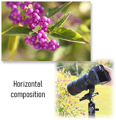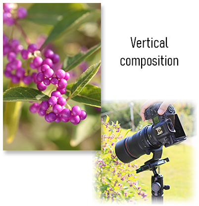 When using a tripod, changing from a horizontal composition to vertical one usually involves tilting the tripod head. This movement causes the shooting position to change significantly, and having to re-adjust the entire setup can be cumbersome especially when shooting macro. The ring-type tripod mount allows the camera to be rotated while keeping the lens still, so that the subject stays in the centre of the composition and the optical axis is maintained even while the orientation of the shot changes.