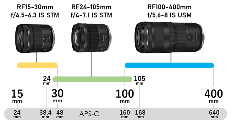 When combined with the existing RF24-105mm f/4-7.1 IS STM and RF100-400mm f/5.6-8 IS STM, you get a reasonably-priced lens trinity that covers a very large 15mm to 400mm focal length range in full-frame equivalent terms. On APS-C cameras like the EOS R7 and EOS R10, the RF15-30mm f/4.5-6.3 IS STM offers an angle of view equivalent to 24 to 48mm in full-frame equivalent terms, which means a range of 24mm to 640mm on all three lenses. The best thing is that you can still use them if you decide to upgrade to a full-frame EOS R camera later on—and then, not only would you be able to shoot without the crop factor, you can also continue to enjoy shooting with the full image sensor resolution!