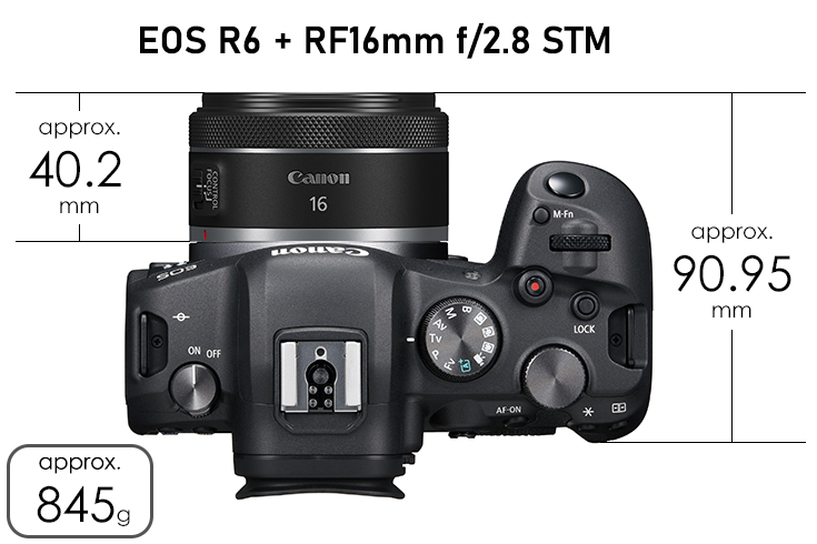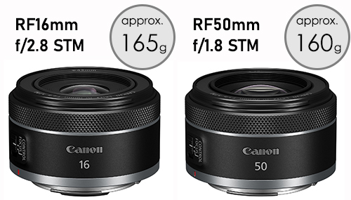 Conventionally, a 16mm ultra-wide-angle prime lens would be bigger and heavier than a 50mm prime lens in the same class. However, the RF16mm f/2.8 STM is around the same size and weight as the RF50mm f/1.8 STM.