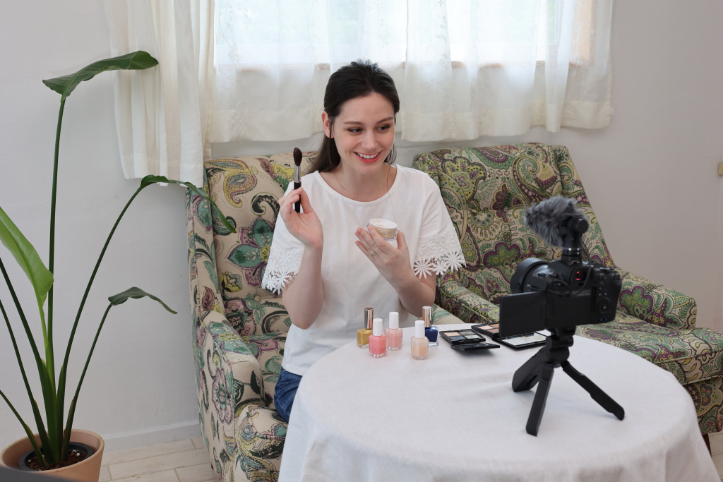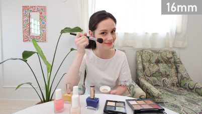 Shooting from the same position, focal length 16mm captures all that is necessary for a product demonstration or e-commerce livestream, from the products on the table, to the person demonstrating, all the way to the background décor.