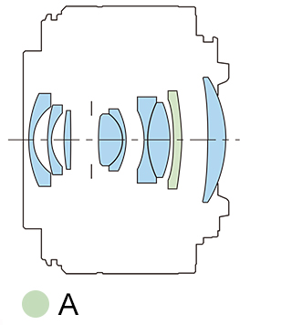 Various forms of lens aberrations are corrected using one aspherical lens element, which also works in tandem with the camera’s digital Lens Aberration Correction function to correct the distortions that happen more frequently on wide-angle lenses.