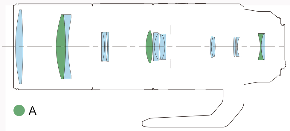 The lens also adopts a multiple zooming group mechanism where all the lens groups other than the IS group move during zooming. This structure reduces the changes in optical properties that occur when the focal length changes, ensuring that image quality is consistently high throughout the entire focal range.