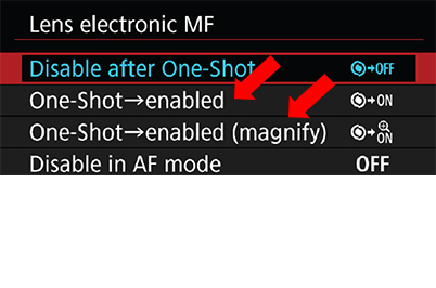 1. In the Lens electronic MF menu, set either of the following to ‘ON’: