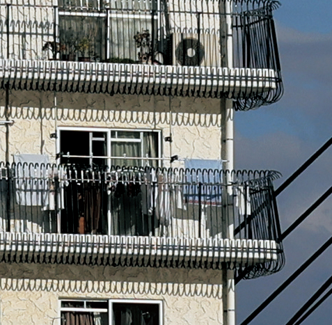 Comparing the image centre in the above two shots, the lenses have more or less the same resolving power. To me, the image by the RF lens seems a little sharper with slightly finer lines and better microcontrast.