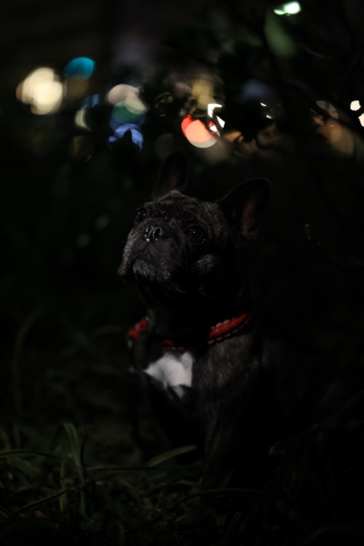 The larger the maximum aperture, the easier it is to focus even under challenging conditions. One example is this black dog at night where there is little contrast. A larger maximum aperture allows more light to enter the camera. More light means more information for the autofocus system—and better focusing accuracy!