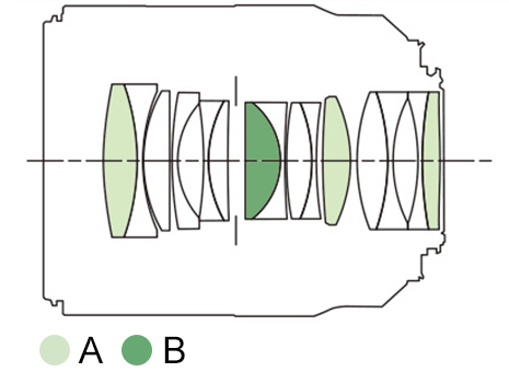A: PMO aspherical lens | A: Aspherical lens elements B: UD lens elements |