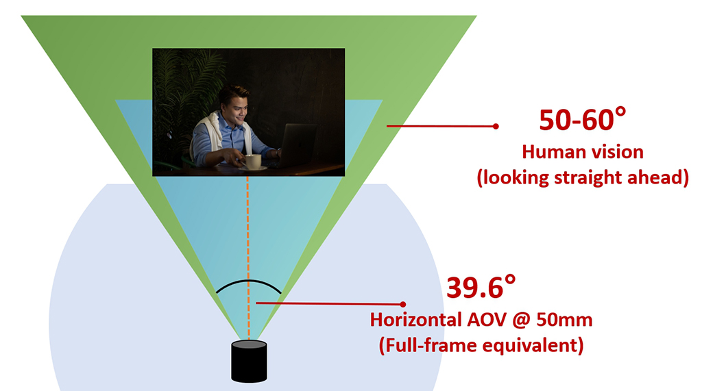(In reality, the angle of view can also be measured vertically and diagonally. But for easier understanding, we’ve taken the horizontal angle of view as a reference.)