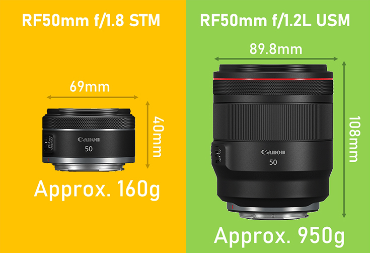 | RF50mm f/1.8 STM | RF50mm f/1.2L USM | |