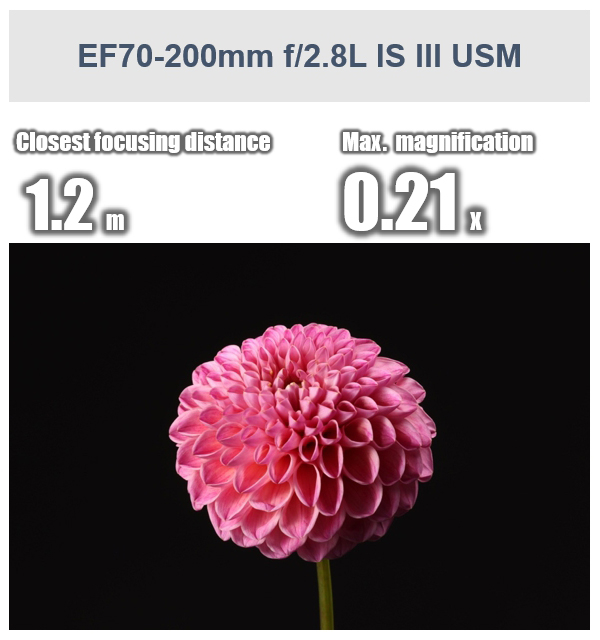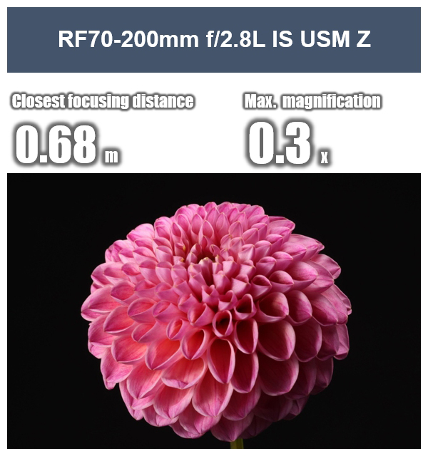Besides its telephoto ability to zoom in on faraway subjects, the RF70-200mm f/2.8L IS USM Z has improved capabilities for focusing on objects that are nearer, thanks to the use of a floating focus system where two Nano USMs (Ultrasonic Motors) move two different focusing groups independently. At 200mm, it achieves a closest focusing distance of 0.68m and a maximum magnification of 0.3x. The high-precision electronic floating focus control system maintains the focus position even with nearby subjects, maintaining amazing image quality from closeups to infinity.