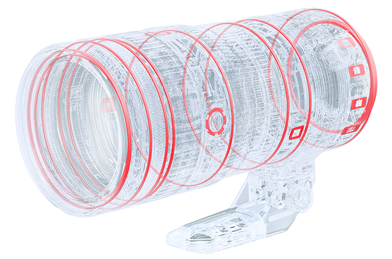 The RF70-200mm f/2.8L IS USM Z adopts the latest optical design that takes full advantage of the RF mount’s large diameter and short back focus. It incorporates various special lens elements in an optimised layout that effectively corrects various lens aberrations, achieving clear images with minimal colour bleeding over the entire zoom range. The special elements are: - One replica aspherical lens (also used in the RF24-105mm f/2.8 L IS USM Z) - 2 Super UD lenses - 1 UD aspherical lens - 2 glass-molded (GMo) aspherical lenses