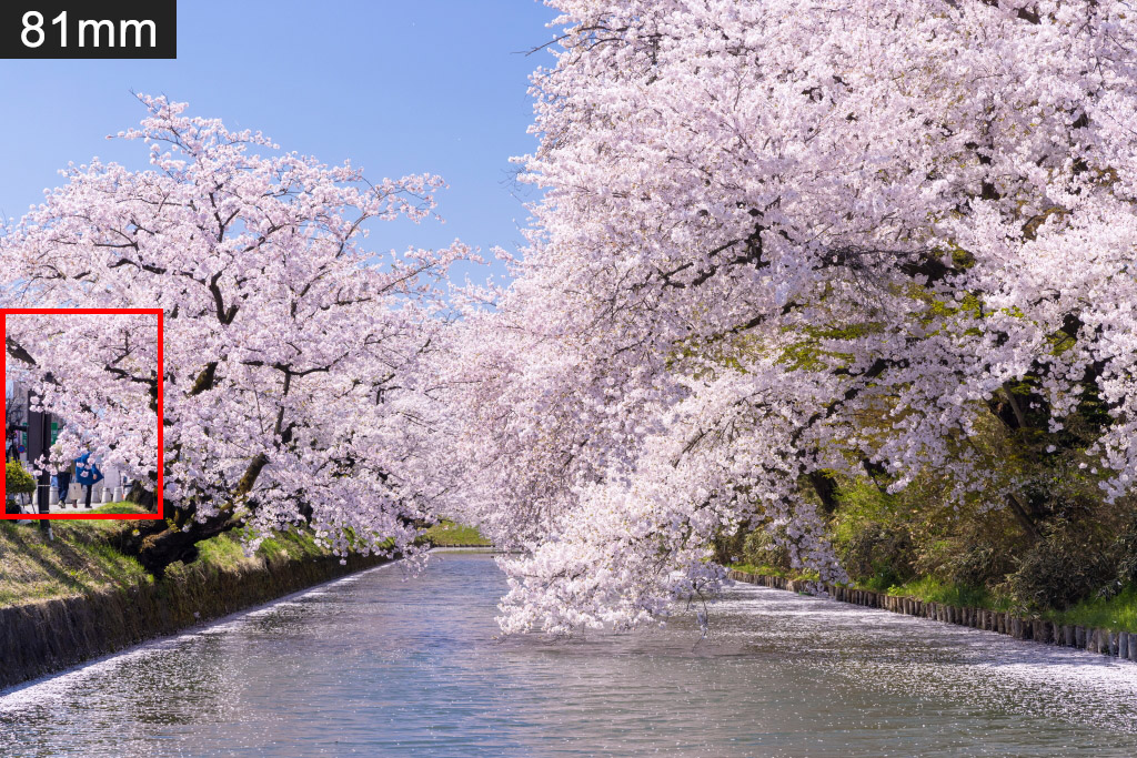 The walking path next to the moat was still in the frame at 81mm. I had to zoom in to at least 90mm to exclude it from the frame.