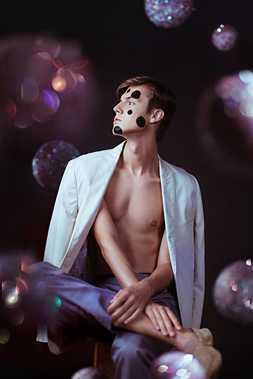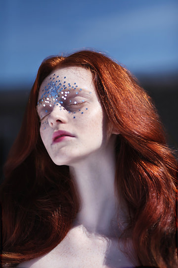 Another shoot done during her residency in SVA where she had free access to the studio. Floating balls were made of Styrofoam with glitter stuck on them.