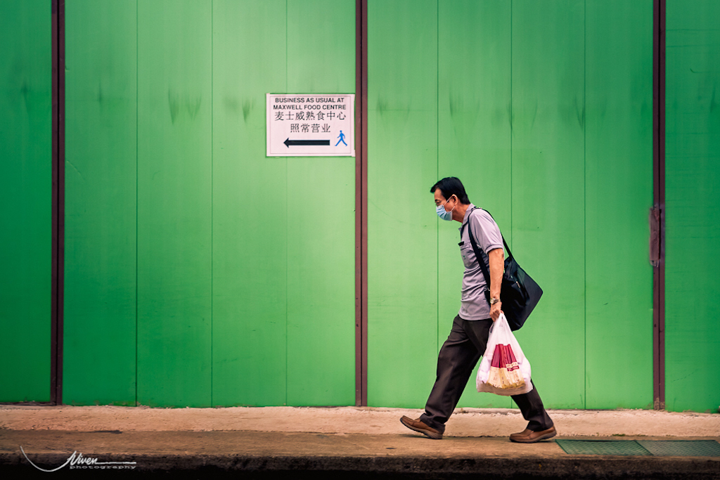 When it comes to street photography, I prefer shooting in black and white. I like my street shots to feature high contrast and dark shadows against bright lights, which is a little hard to express in colour. However, there are some cases where it’s better to use colour, like when there’s contrasting colours or colour isolation.