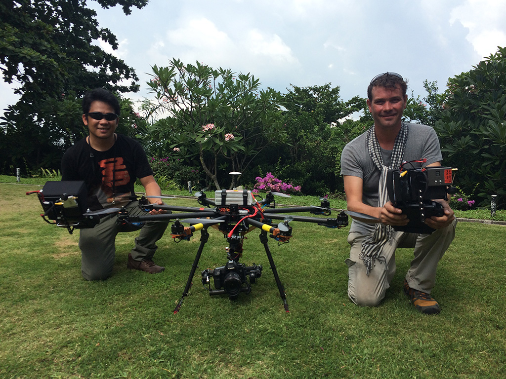 A drone is pretty much a standard part of my equipment now. Clients almost expect you to have one. In its infancy we used to build the platforms ourselves (pretty much home brewed), nuts and bolts had to be checked and tightened, wires re-soldered if damaged, so we were always bringing tool sets of soldering irons and battery chargers. Now with pre-built platforms we just travel with one case, a bit of Velcro tape and a few cable ties.