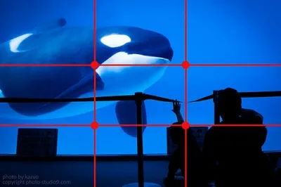You can see a large orca in the top left, and a child attempting to reach for it in the bottom right of the photo. By placing two or more subjects on the points of intersection in this manner, you can achieve well-balanced photos.