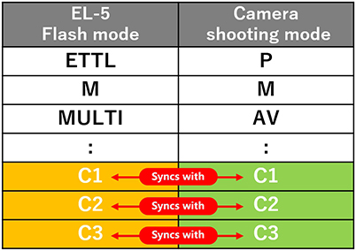 There are three custom flash mode slots available: C1, C2, and C3. These can be linked to the C1, C2, and C3 custom shooting modes on your camera, so that when you use the C1 mode on your camera, for example, the Speedlite automatically recalls and uses C1 custom flash mode. With less to adjust, your shooting workflow will be smoother and easier.