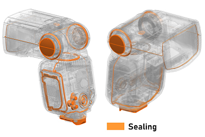 The Speedlite EL-5 has dust- and drip-proof performance equivalent to the EOS R5. It is also designed for compatibility with the Multi-Function Shoe, with a rubber adapter in the locking mechanism that provides even greater protection from dust and moisture when locked onto the camera.
