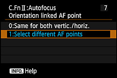 By setting “Orientation linked AF point” to [Select different AF points], the camera switches the preset AF point automatically according to the camera orientation.