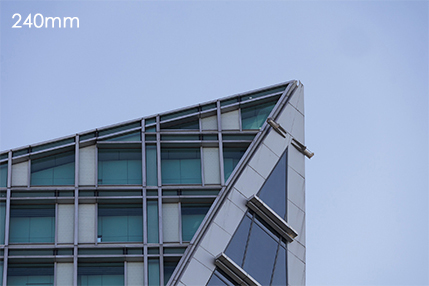 As both superzoom lenses are variable aperture lenses, you might notice their limitations if you frequently shoot indoors or in low light. Consider the RF24-105mm f/4L IS USM and RF24-105mm f/2.8L IS USM Z. 105mm is enough for visible compression and detailed close-ups of architecture across the road.