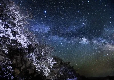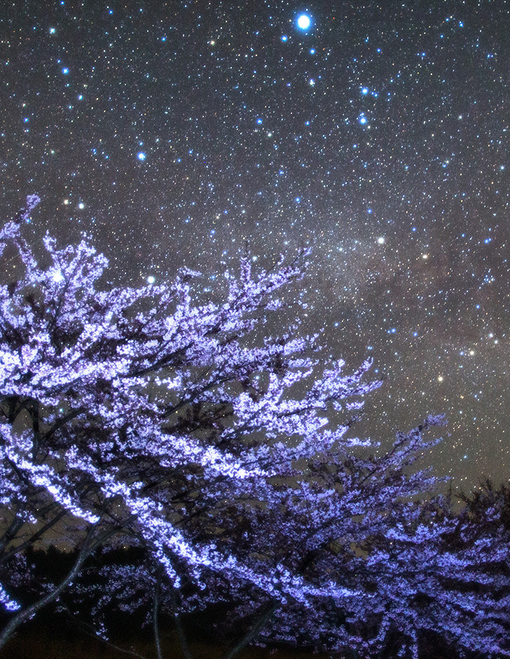 When you are photographing a starscape, including flowers or trees of the season may bring dramatic changes to the resulting photo. Here are some techniques for producing a spectacular shot that features the Milky Way framed by the famous Japanese cherry blossoms. (Reported by: Shigemi Numazawa)
