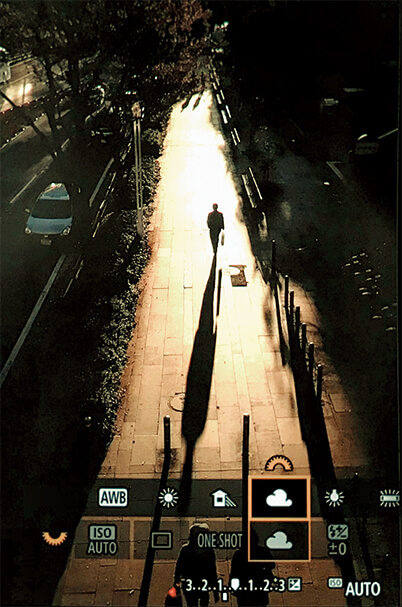 Looking down onto the sidewalk, I was enchanted by the long, beautiful shadows cast by the passers-by and decided to take a shot. When viewed through the EVF, the scene somehow looked slightly less flavourful, so I tweaked some settings and waited until the elements in the frame formed a dramatic picture.