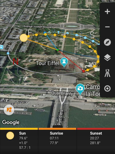 I use the Sun Surveyor app, which not only tells you the time of sunrise, but also the location of the sun at a specific place and time.
