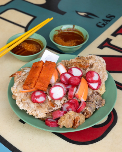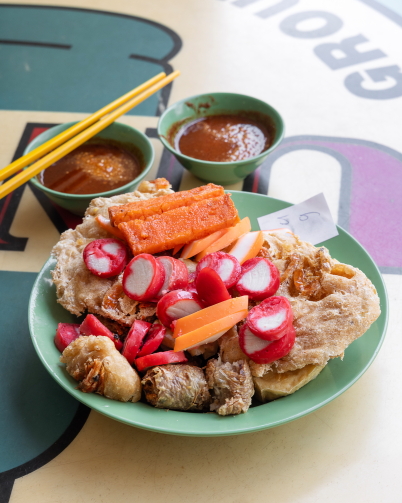 EOS R5/ RF24-105mm f/4L IS USM/ FL: 65mm/ Aperture-priority AE (f/9, 1/80 sec, EV -0.3)/ ISO 125/ Ngoh hiang (pork rolls in beancurd skin), sausages, and assorted fritters