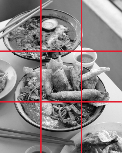 It’s okay if the other dishes are partially cropped, just make sure that key elements are placed along the lines or at or near the intersections. You can also apply this when you crop your images to 4:5 for social media.