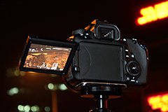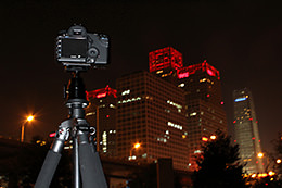 Secure the camera on a tripod in order to ensure more precise focusing as well as to draw out the full potential of the image sensor's resolving power. For night shots taken at a low ISO speed, handheld shooting would be a great challenge regardless of how bright the lens is. To prevent camera shake from lowering the resolving power, choose a sturdy tripod.