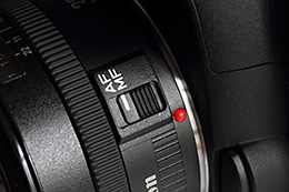 Set the focus mode switch on the lens to MF (for the EF-M lens, which is designed for the EOS M, operate using the menu screen on the camera). The surest way to achieve sharp focus in night photography is to combine the use of the Live View function with MF, if your camera is a model that supports Live View shooting. Focusing accuracy is very high in this case, as focus is established while the image projected onto the image sensor surface is enlarged on the rear LCD monitor. Yet another advantage, among many others, is that you can set focus on any point of the image.