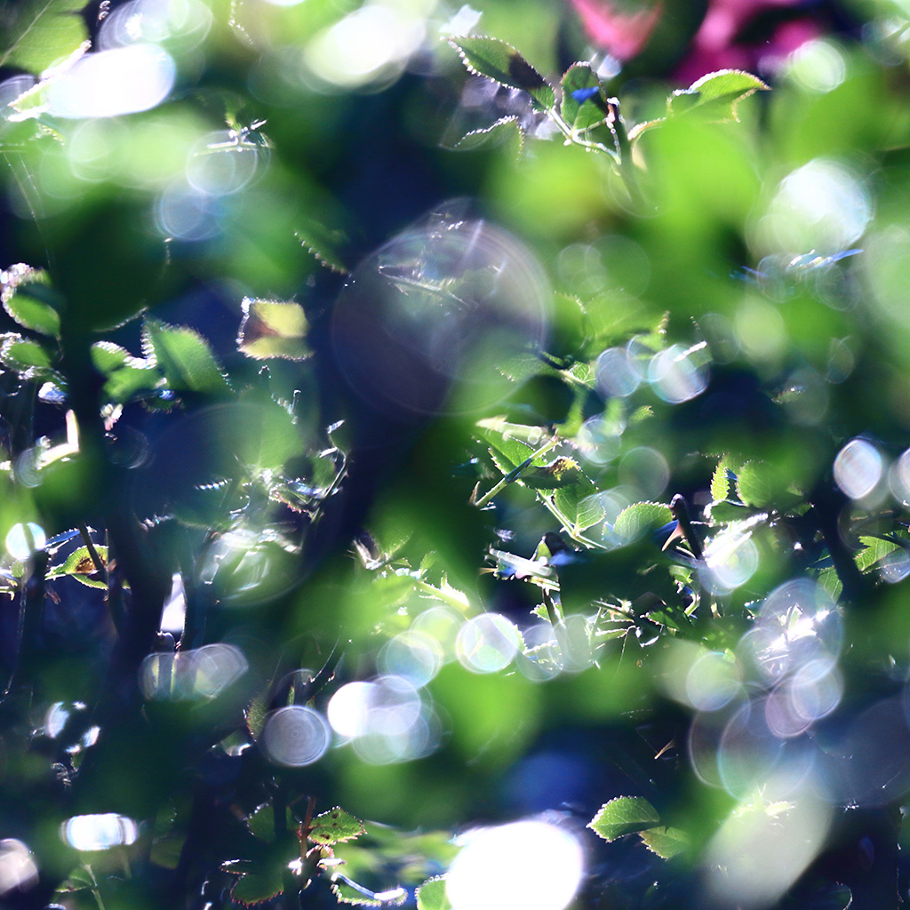If the photo is taken in backlight on a clear day, you can include light shining on the leaves as bokeh circles. After the rain stops, the rain drops sparkle, creating even more bokeh circles.