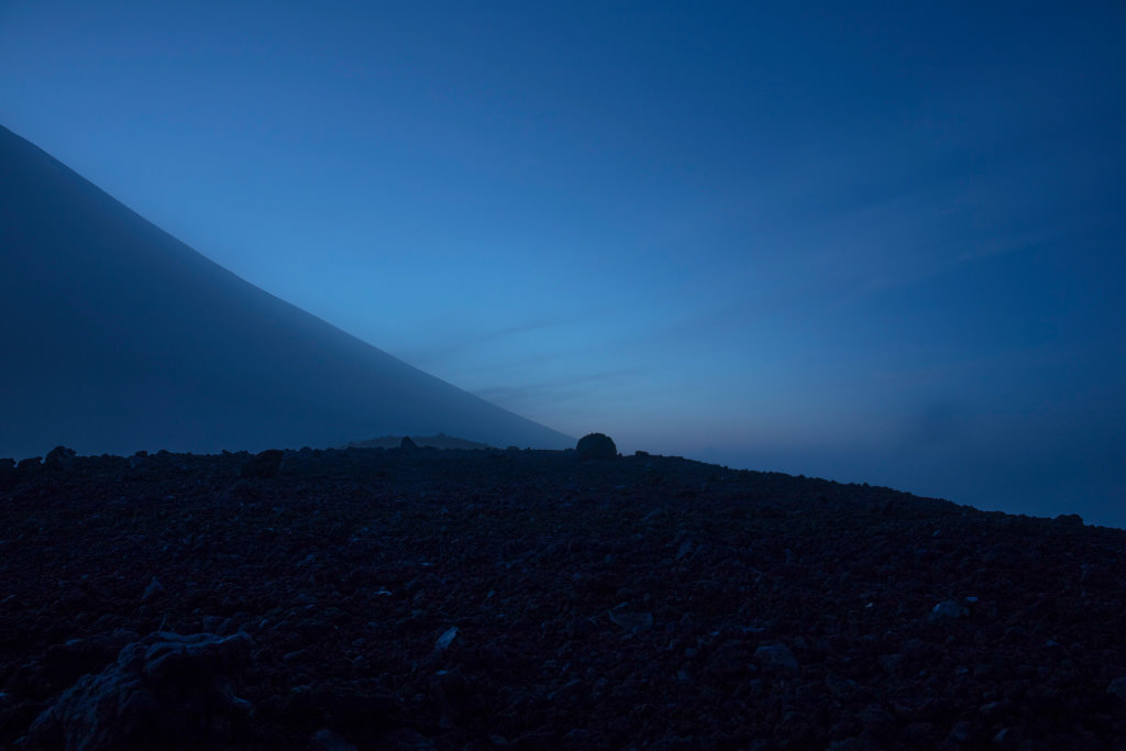 A shot of the clouds travelling upwards with the wind as the magic hour arrives at Hoei Crater on Mt. Fuji, taken at a slow shutter speed using a tripod and remote release.