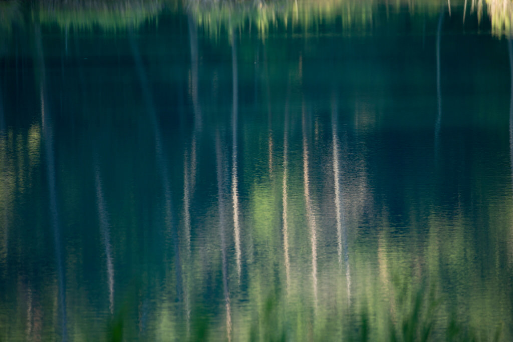 Handheld shot taken at Goshiki-numa, Fukushima Prefecture. The trees reflected on the surface of the water are highlighted, adding depth to a photo that was taken at a comparatively flat angle.