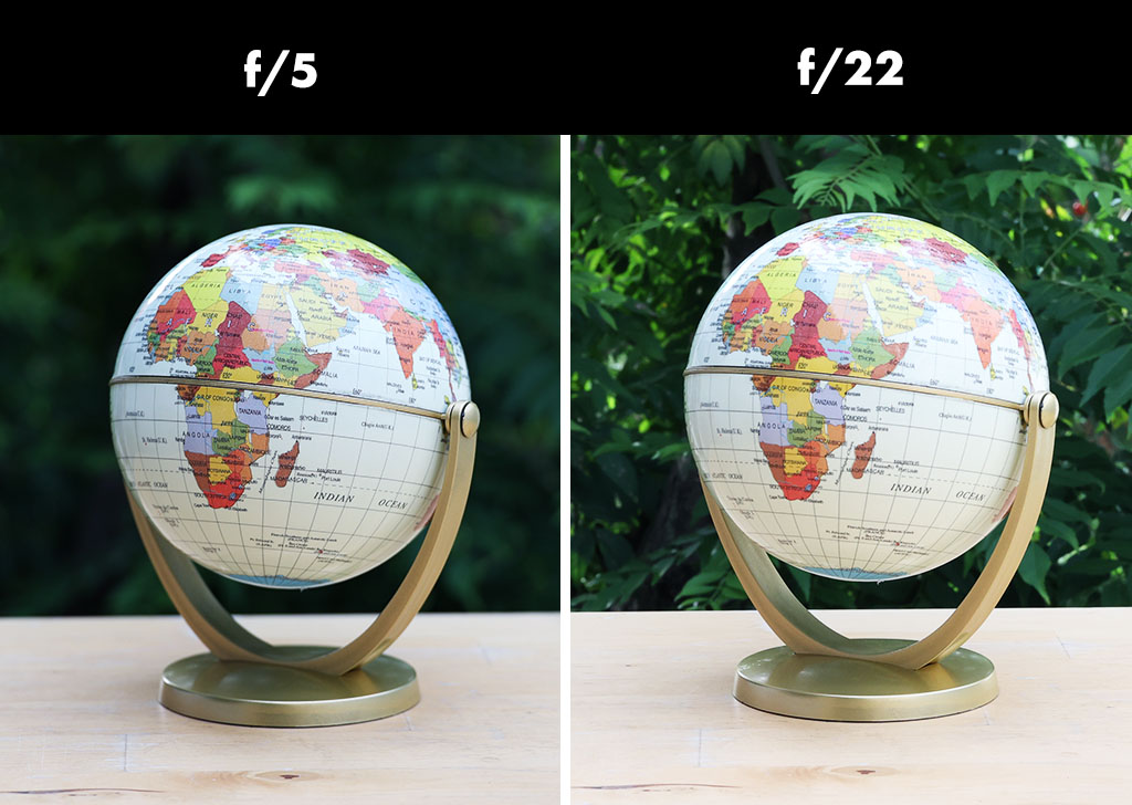 Situation 1: You want to capture more globe details and to have the globe stand out from the background plants. You have used the largest aperture to achieve a shallow depth of field.