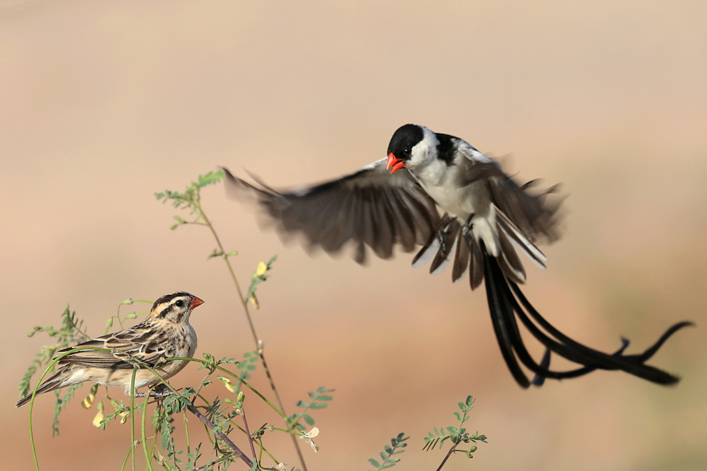 Pin-tailed whydah courtship flight display: a single frame grabbed in-camera from a 60p 4K video, shot with the EOS-1D X Mark II.