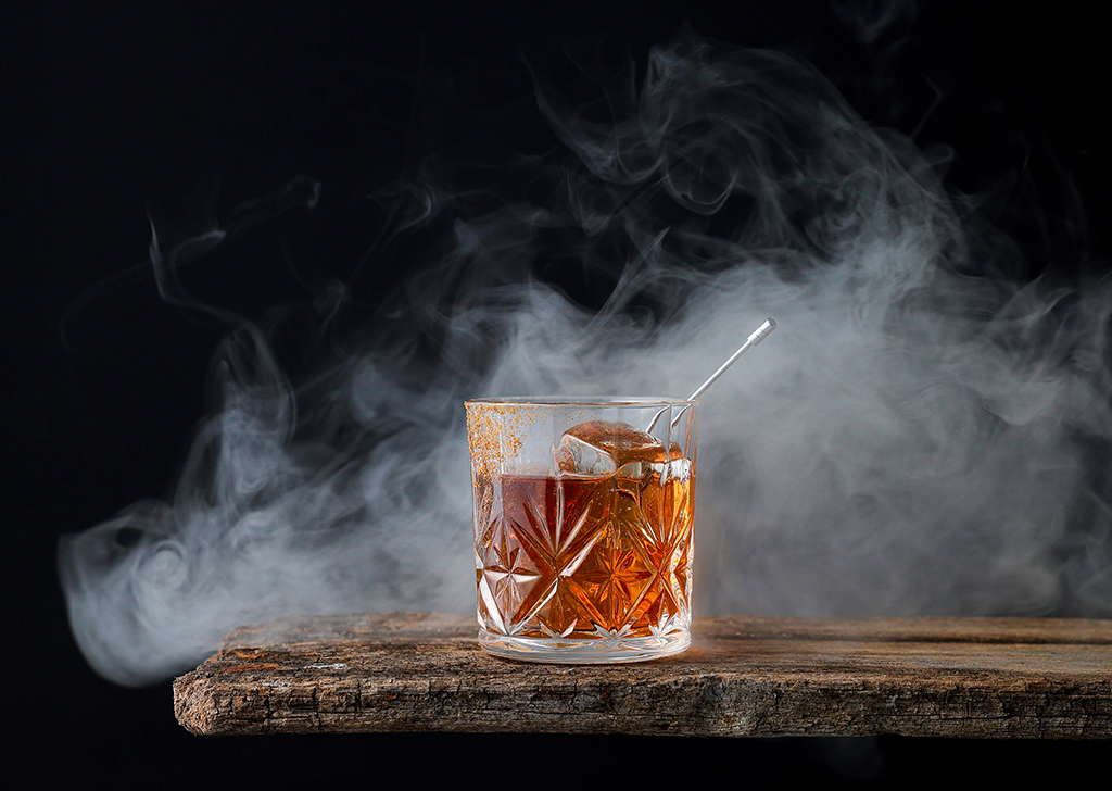 Smoke is a great way to add another layer of character to your image. It can relay the temperature if you’re shooting a hot drink, a smoky flavour, or an exotic flair to an image. “The masculinity of the drink is emphasised by the smoke,” says Nora.