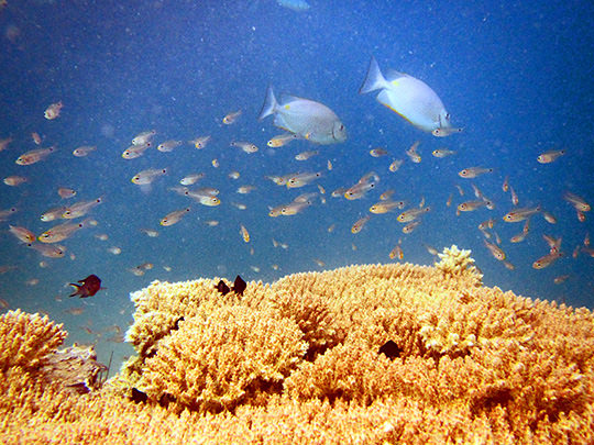 Fishes, and even sharks, are easily frightened with sudden movements and bubbles. Be patient and hold your breath for a few seconds to stabilise your shot, or try to stay at the seabed if the depth is not too deep.