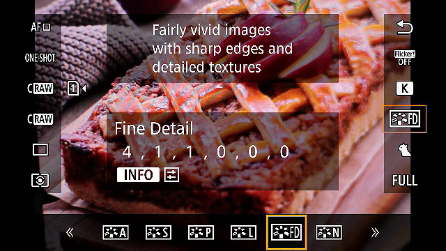 I use the “Fine Detail” Picture Style setting to get better details of the food.