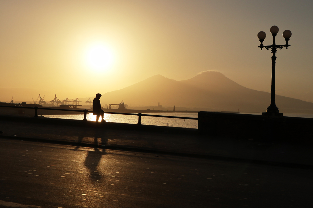 Behold Mount Vesuvius, the famous Italian volcano that dominates the skyline around Naples. I wanted to add a human context to this landscape shot, so I looked for a man-made foreground to accompany the mountain. The distant docks, the seaside promenade and the human silhouette all worked together to give a stronger sense of place to this photo.