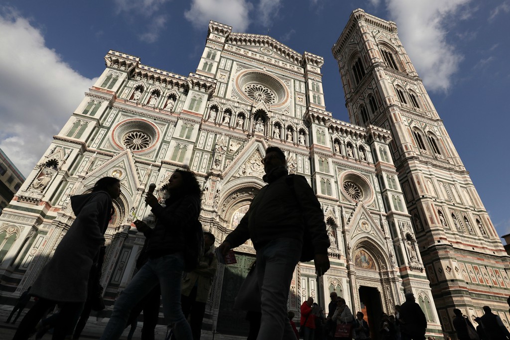 Tourists and locals bustle past the Florence Cathedral