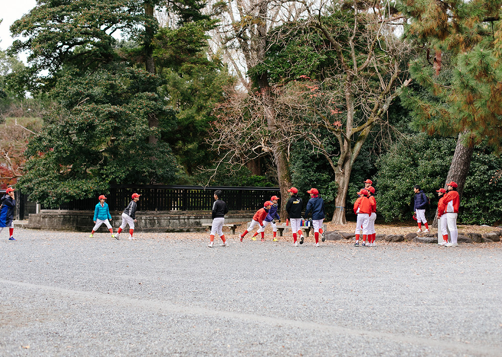 High school students practise for their sporting event at the edge of the imperial park
