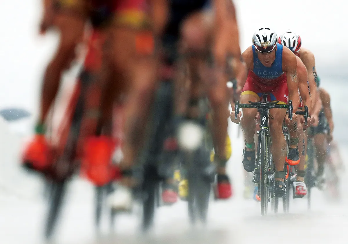 In this shot, I put the focus on a triathlete further to the back so that the one in front turns into foreground bokeh. This reduces the empty space and gives the illusion that you are right in the middle of the action. The result is an enhanced sense of tension, excitement, and hence impact.