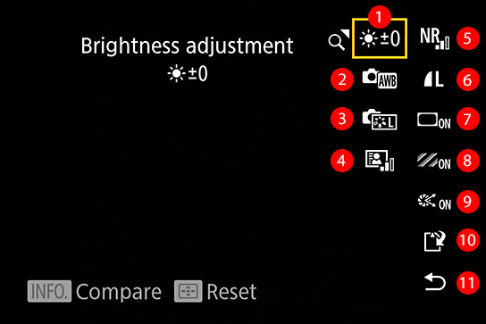 1. Brightness adjustment: EV-1, EV-2/3, EV-1/3, EV±0, EV+1/3, EV+2/3, EV+1