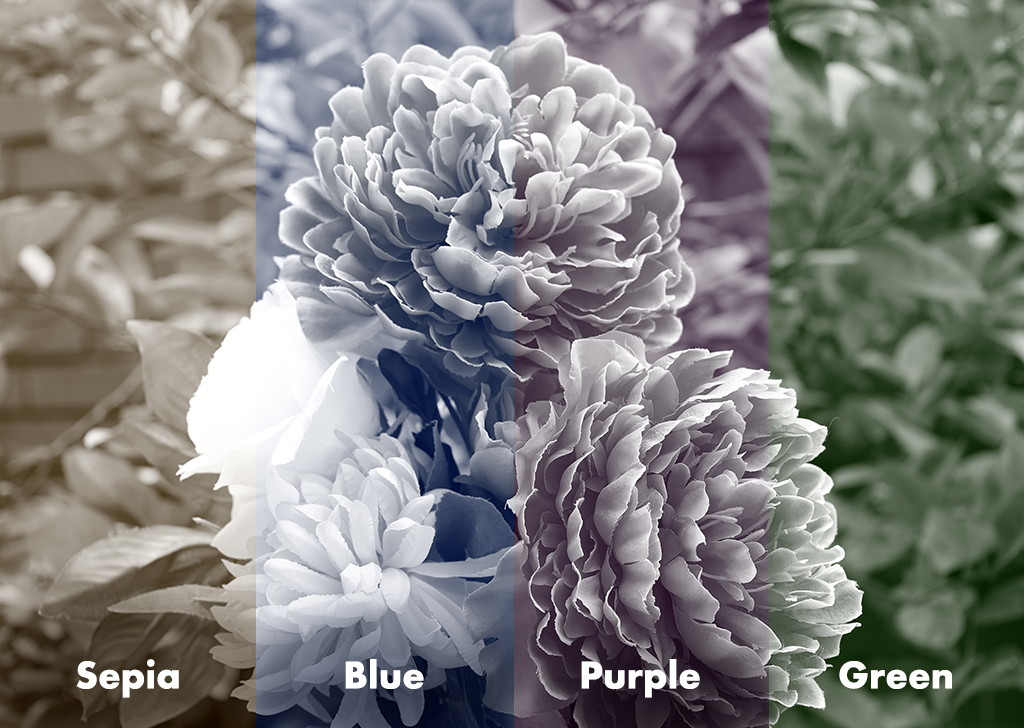 The blue, green and purple tone effect filters in the monochrome settings introduce the respective colour tones into the black-and-white photo. While these may not sound like common colour tones to overlay on your photos, they do make for an interesting colour palette that can make your monochrome photos stand out from others.