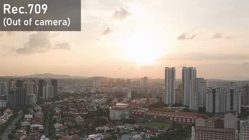 The sun and surrounding cloud looks blown out in the Rec.709 recording, whereas Log recording preserves more highlight details. Log footage looks flatter out of the camera and must be colour graded to put the colours and contrast back in—but that’s also where the ample tonal information captured helps.