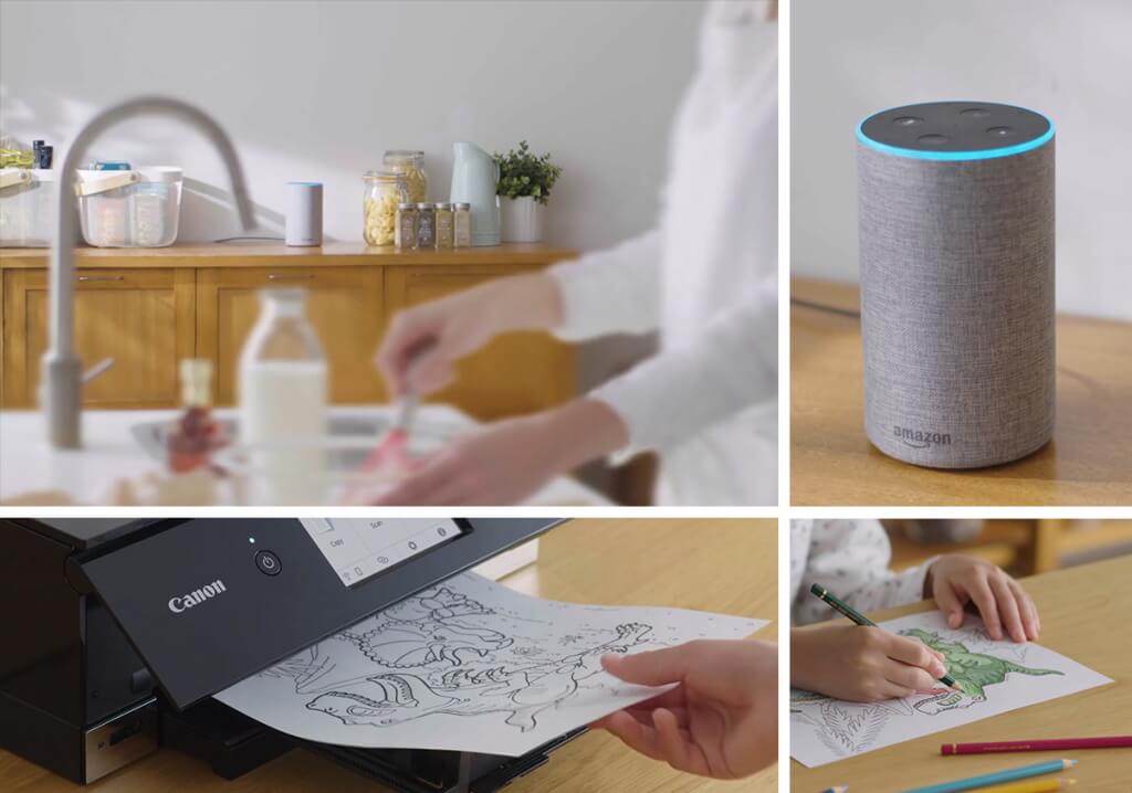 To setup voice command printing on Alexa-enabled devices install the Amazon Alexa app on your smartphone. From there, tap on “Canon Inkjet Printer Skills” from the menu, sign in with your CanonID and you’re all set — simply begin all your commands by calling out “Alexa”.