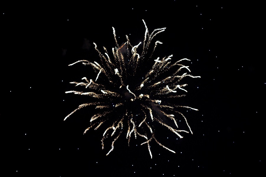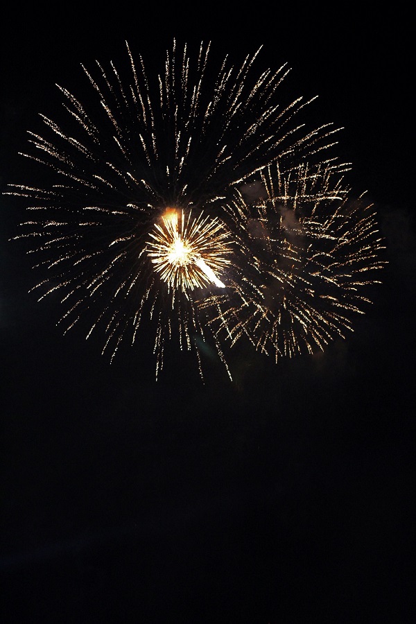 With the distance between you and the fireworks being quite far, it is better if you set your focus to infinity, so that you can get the right image with the right focus. To set this, try it out first with another firework, focus to that object using a certain point. Usually the centre dot is the most sensitive. Aim using your viewfinder, lock on the focus by holding the shutter release halfway, and then change the autofocus mode on the lens into manual. Then don’t change the setting.