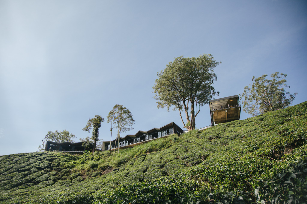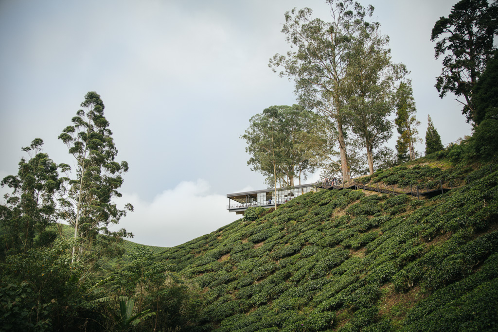Photos were captured at the BOH Tea Centre estate, various angles such as from the Sungei Palas Tea Centre, highlighting its contemporary architectural style that included a 20-foot overhanging balcony as a viewing deck that was designed to integrate the natural highland landscape.