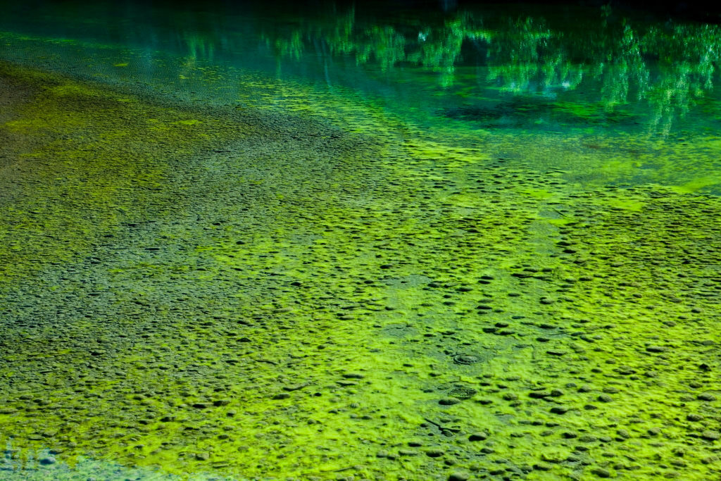 I discovered very clear spring water beside a highway. I was stunned by the beauty of the colour in the water, which was blanketed by a layer of moss.