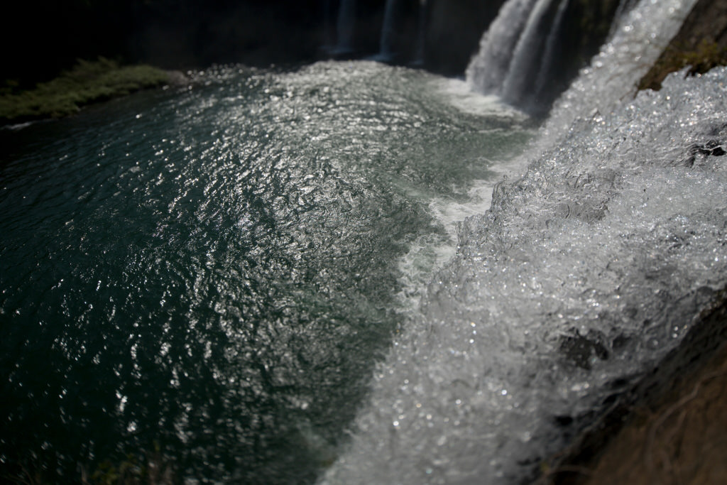 A handheld shot looking from above the waterfalls. I took the shot on a tilt, focusing on the waterfall and basin under the waterfall at the same time to capture the ever-changing flow of water.